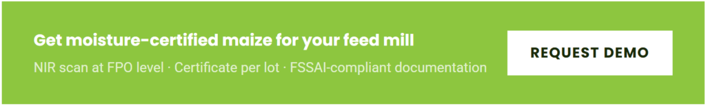 The maths is straightforward. At a feed mill processing 500 tonnes of maize per month, even a 50% rate of high-moisture lots (above 15%) adds Rs. 50,000 – Rs. 60,000 per month in drying costs alone i.e., Rs. 6 lakhs per year that never appears on a single invoice but quietly erodes every batch margin.