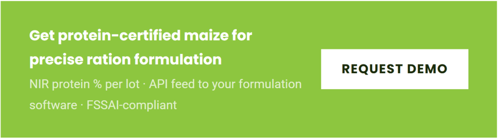 Maize is the primary energy and protein base in broiler and layer rations across India. When procurement buys maize without knowing its protein content, the nutritionist compensates with soya meal. That compensation is expensive and it is happening in every Indian feed mill that buys uncertified grain.